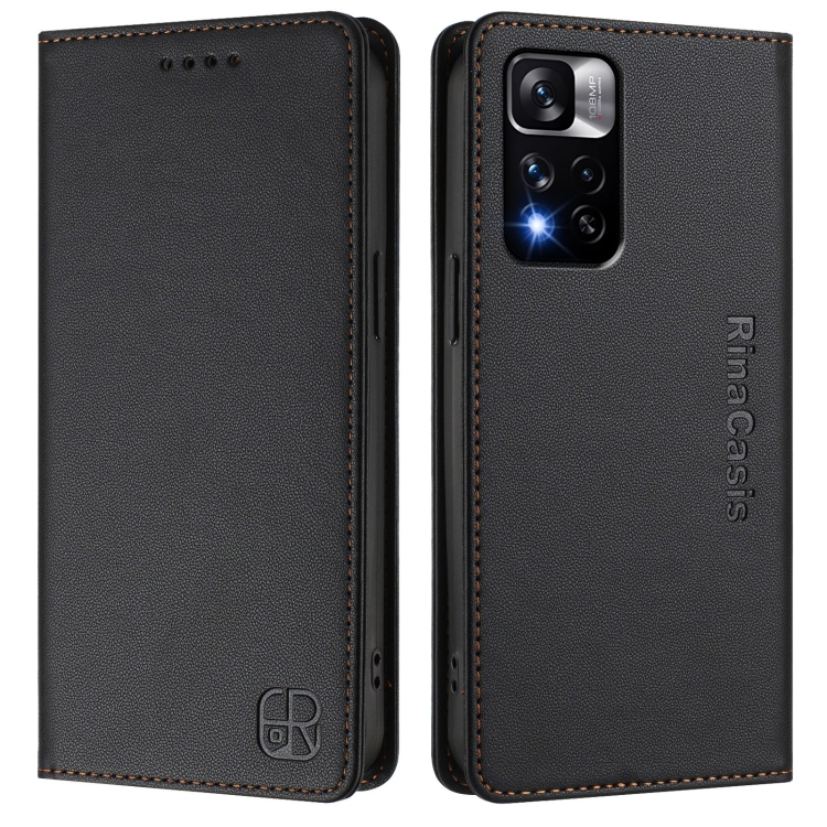 Funda de Cuero con Doble Pliegue y Succión Magnética Rfid para Redmi Note 11 Pro+ 5G, Modelo Europeo Rc01 (Negro)