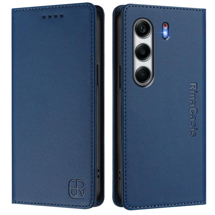 Funda de Cuero con Doble Pliegue y Succión Magnética RFID para Tecno Camon 40 Pro 4G Rc01 (Azul Oscuro)