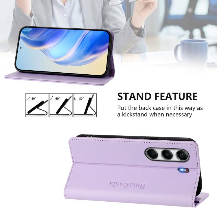 Funda de Cuero con Doble Pliegue y Succión Magnética Rfid para Tecno Camon 40 Pro 4G Rc01 (Morado Claro)