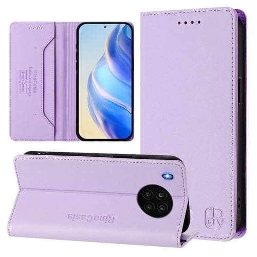 Funda de Cuero con Doble Pliegue y Succión Magnética Rfid para Honor 50 Lite Rc01 (Morado Claro)