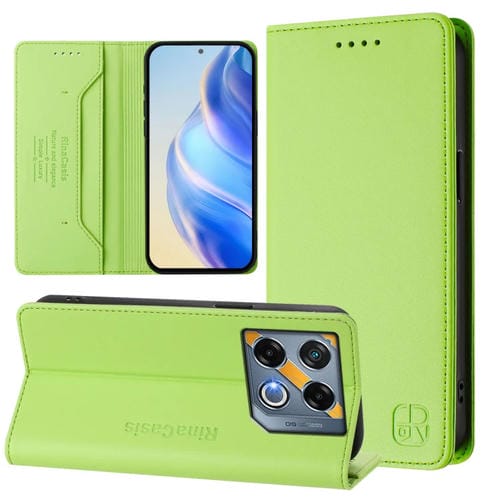 Funda de Cuero con Doble Pliegue y Succión Magnética RFID para Infinix GT 20 Pro 5G RC01 (Verde Hierba)