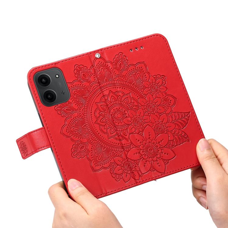 Funda de cuero con estampado de flores de siete pétalos para Redmi 15C 4G (173,1 mm) / Redmi 15C 5G (173,1 mm) (Rojo)
