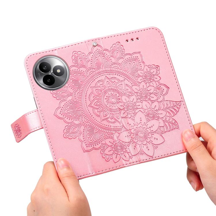 Funda de cuero con estampado de flores de siete pétalos para Redmi K80 Ultra (oro rosa)