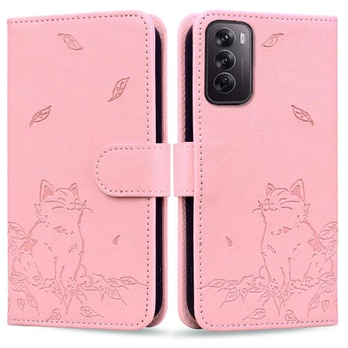 Funda de Cuero con Estampado de Gato Lindo para Oppo Reno12 5G Global (Rosa)