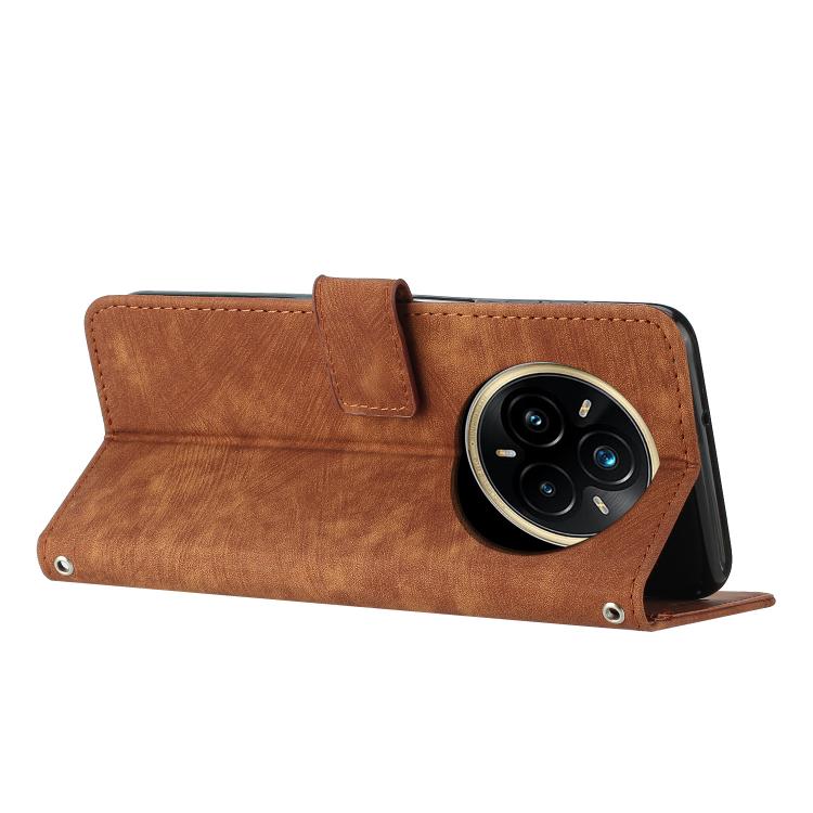 Funda de Cuero con Estampado de Rayas y Cordón para Realme 14 Pro (Marrón)