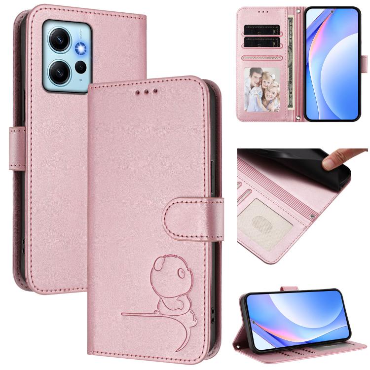 Funda de cuero con estampado RFID y cordón para Redmi Note 12 4G Global Litter Panda (rosa)