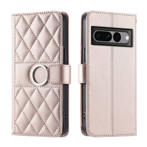 Funda de Cuero con Forma de Rombo y Hebilla de Anillo para Google Pixel 7 Pro (Oro Rosa)