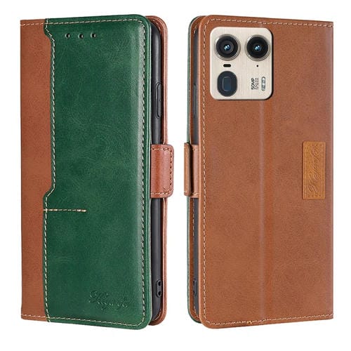 Funda de Cuero con Hebilla Lateral para Motorola Edge 50 Ultra (Marrón Claro y Verde)
