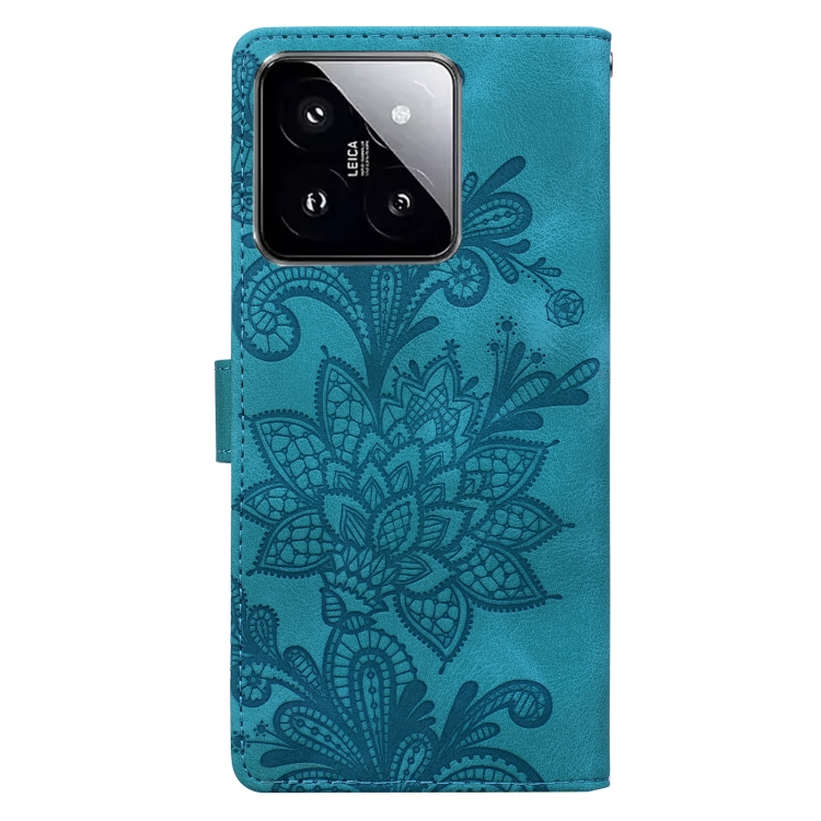 Funda De Cuero Con Hebilla Magnética Y Encaje Floral En Relieve Para Xiaomi 14 (Verde)