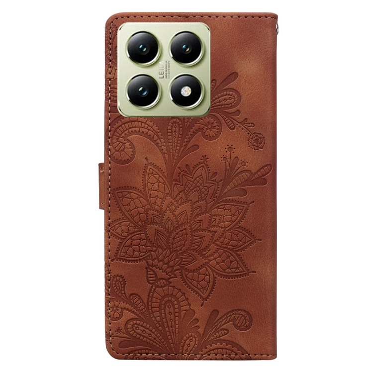 Funda De Cuero Con Hebilla Magnética Y Encaje Floral En Relieve Para Xiaomi 14T (Marrón)