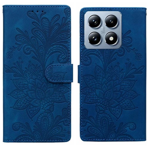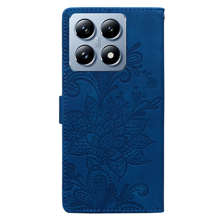 Funda de Cuero con Hebilla Magnética y Encaje Floral En Relieve para Xiaomi 14T Pro (Azul)