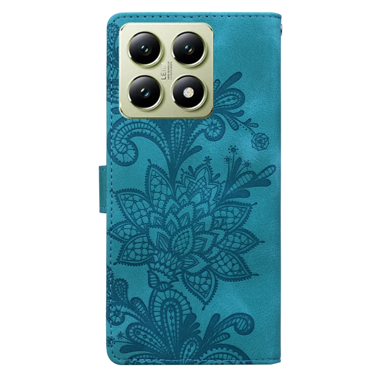 Funda De Cuero Con Hebilla Magnética Y Encaje Floral En Relieve Para Xiaomi 14T (Verde)