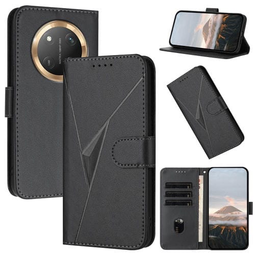 Funda de Cuero con Hebilla y Diseño de Triángulos para Honor X9C (Negro)