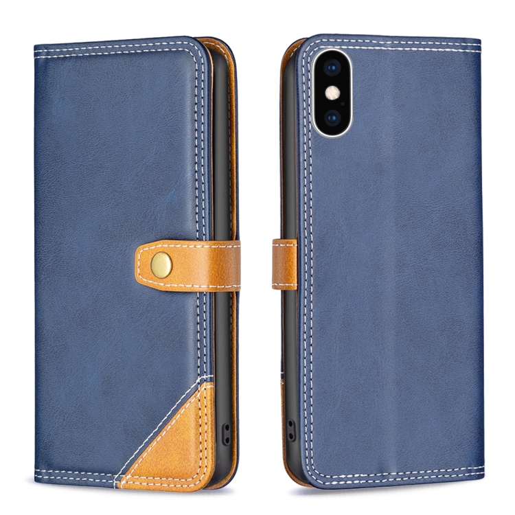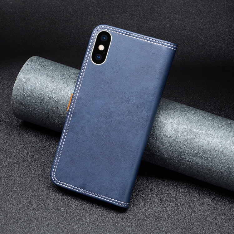 Funda de Cuero para iPhone Xs Max con Hilo de Coser Doble a Juego (Azul)