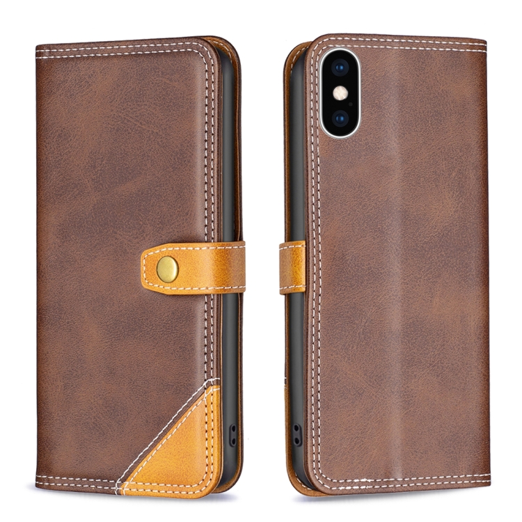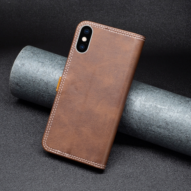 Funda de Cuero para iPhone Xs Max con Hilo de Coser Doble a Juego (Marrón)