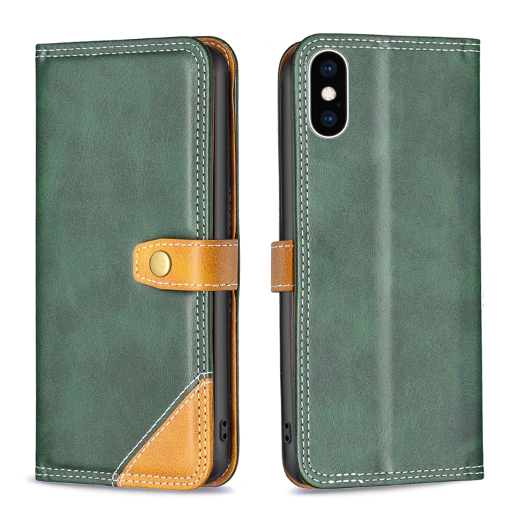 Funda de Cuero para iPhone Xs Max con Hilo de Coser Doble a Juego (Verde)