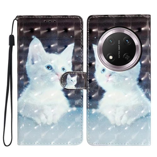 Funda de Cuero con Patrón 3D para Honor X9C 5G (Gato Blanco)