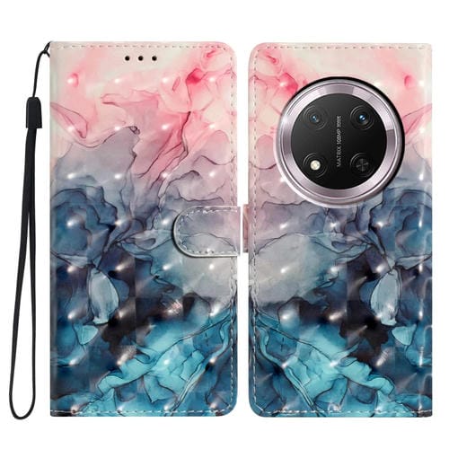 Funda de Cuero con Patrón 3D para Honor X9C 5G (Mármol Rosa y Azul)