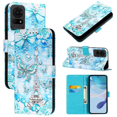 Funda de Cuero para TCL 50 Le 5G con Patrón de Mariposa y Torre de Colores