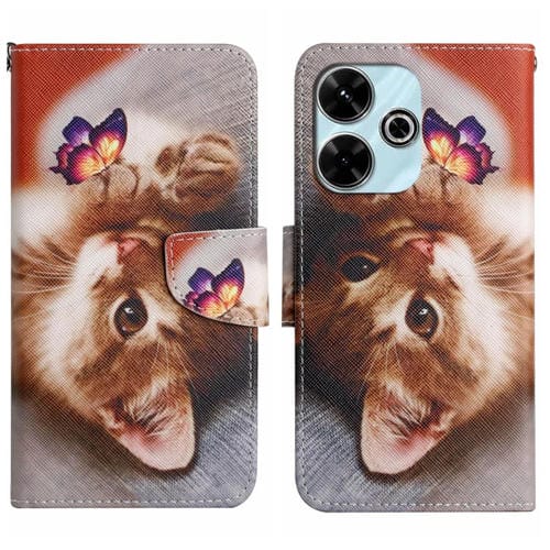 Funda de Cuero con Patrón de Dibujo de Colores para Xiaomi Redmi 13 4G (Mariposa y Gato)