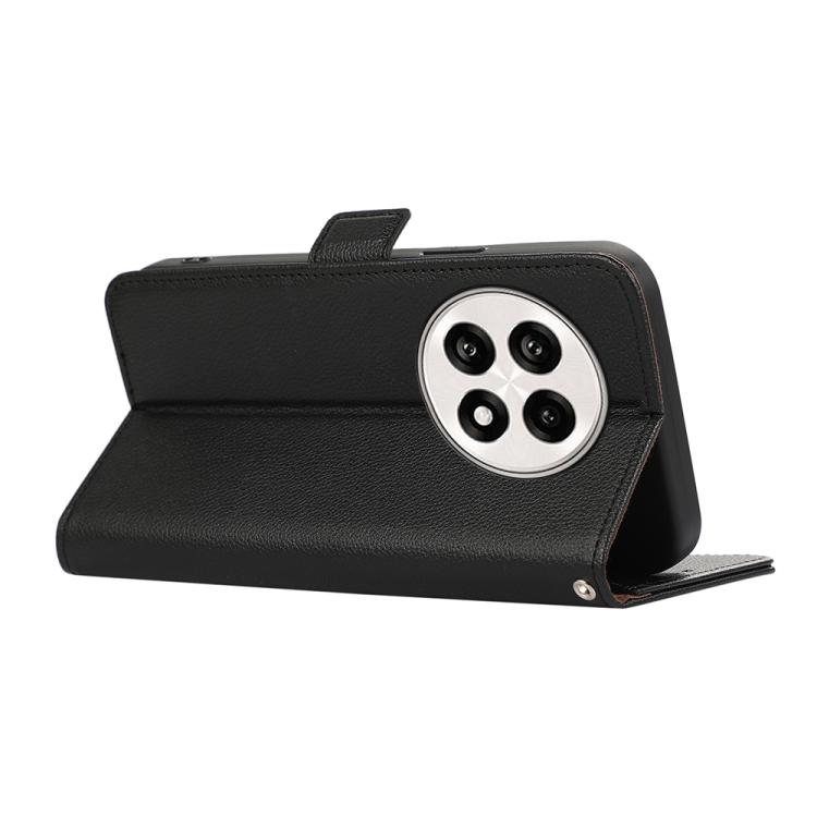 Funda de Cuero con Patrón de Lichi y Cierre Magnético Lateral para OnePlus Ace 5 Pro/Ace 5 Abeel (Negro)