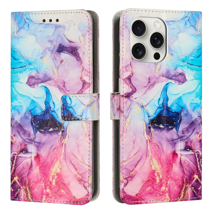 Funda de Cuero para iPhone 16 Pro Max con Patrón Mármol Pintado (Rosa y Morado)