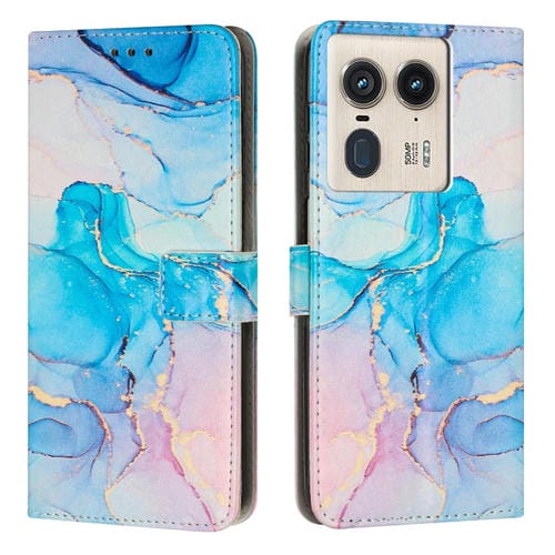 Funda de Cuero con Patrón de Mármol para Motorola Edge 50 Ultra (Rosa y Verde)