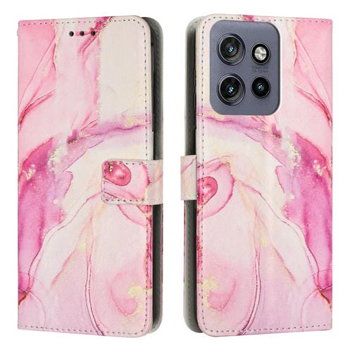 Funda de Cuero con Patrón Mármol para Motorola Moto S50 5G y Edge 50 Neo (Oro Rosa)