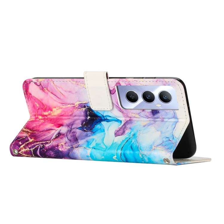 Funda de Cuero con Patrón de Mármol Pintado para Teléfono Realme C65 4G Global (Rosa y Morado)