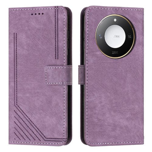 Funda de Cuero con Patrón de Rayas y Tacto Inteligente para Honor X60/X9C con Cordón (Morado)