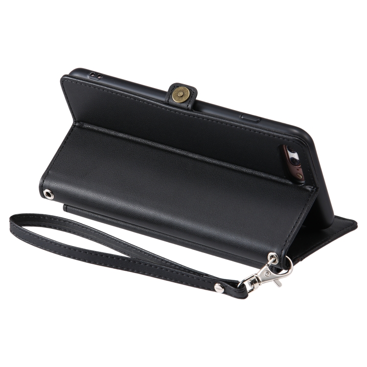 Funda de Cuero para iPhone 8 Plus/7 Plus Ranura Múltiples Tarjetas Cordón (Negro)