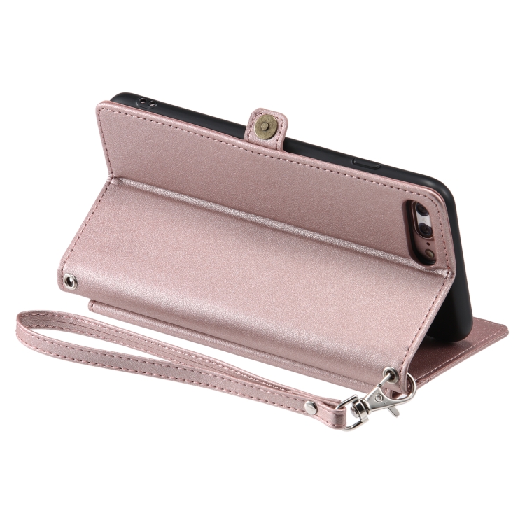 Funda de Cuero para iPhone 8 Plus/7 Plus Ranura Múltiples Tarjetas Cordón (Oro Rosa)