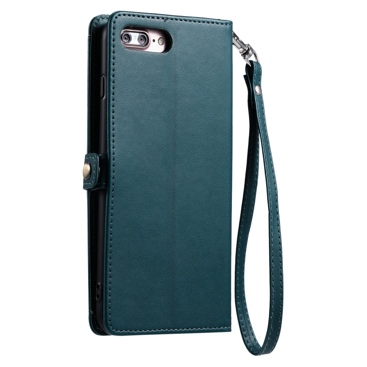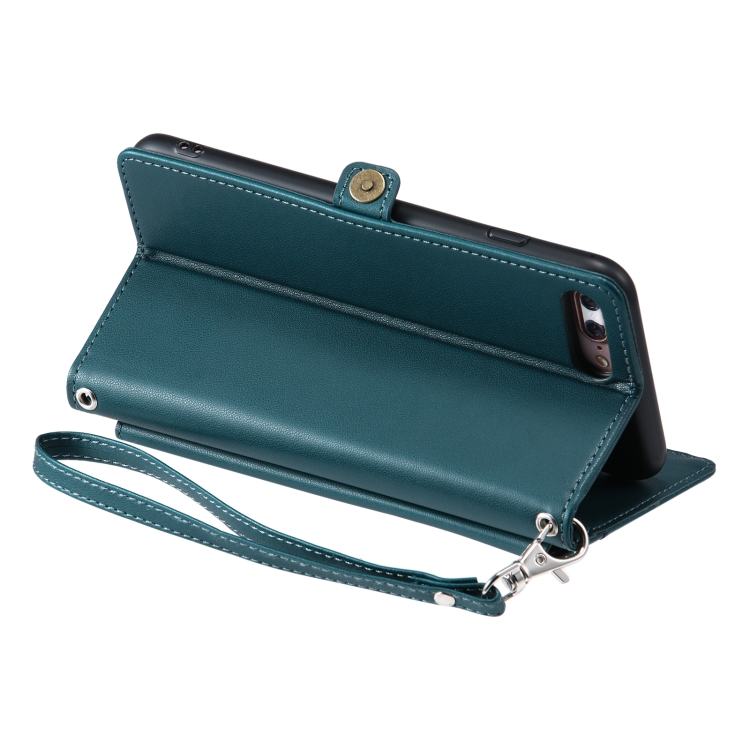 Funda de Cuero para iPhone 8 Plus/7 Plus con Ranura para Tarjetas y Cordón (Verde)