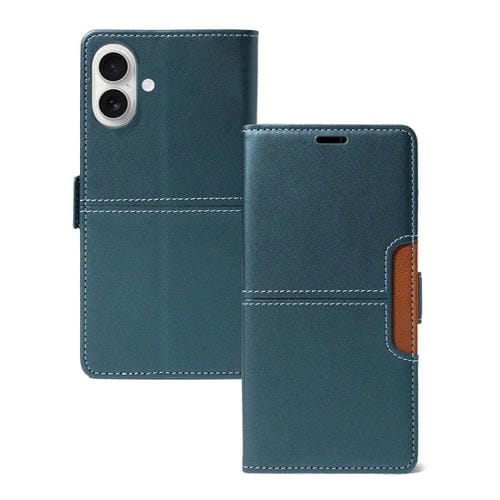 Funda de cuero con ranura para tarjeta y hebilla magnética para iPhone 17 (cian)