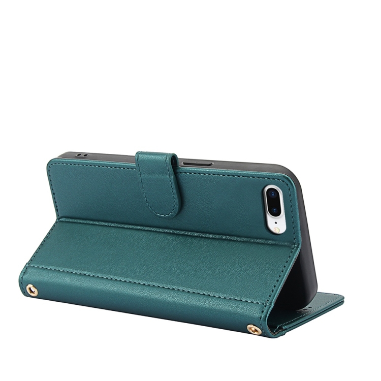 Funda de Cuero para iPhone 7 Plus/8 Plus con Ranuras para Tarjetas y Cordón Doble (Verde)
