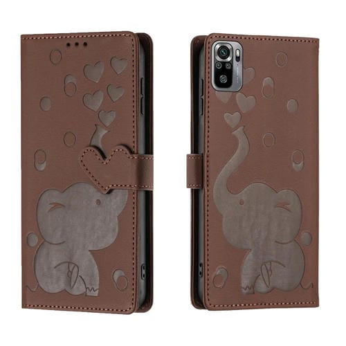 Funda de Cuero con Relieve de Elefante de Dibujos Animados para Redmi Note 10/Note 10S (Marrón)