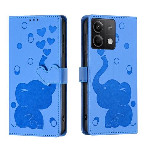 Funda de Cuero con Relieve de Elefante de Dibujos Animados para Redmi Note 13 Pro 5G (Azul)