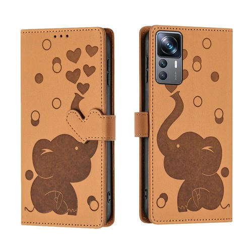 Funda de Cuero con Relieve de Elefante de Dibujos Animados para Xiaomi 12T/12T Pro (Amarillo)