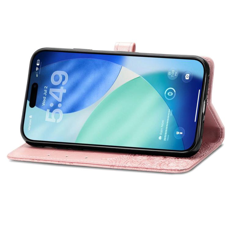 Funda de cuero con relieve de flor de mandala para iPhone 17 Pro (oro rosa)