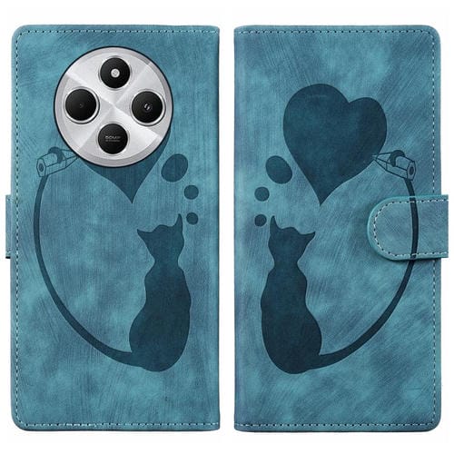 Funda de Cuero con Relieve de Gato y Corazón para Xiaomi Poco C75 (Azul)
