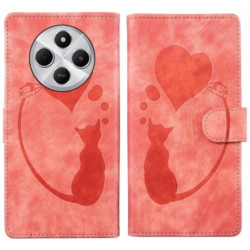 Funda de Cuero con Relieve de Gato y Corazón para Xiaomi Poco C75 (Naranja)