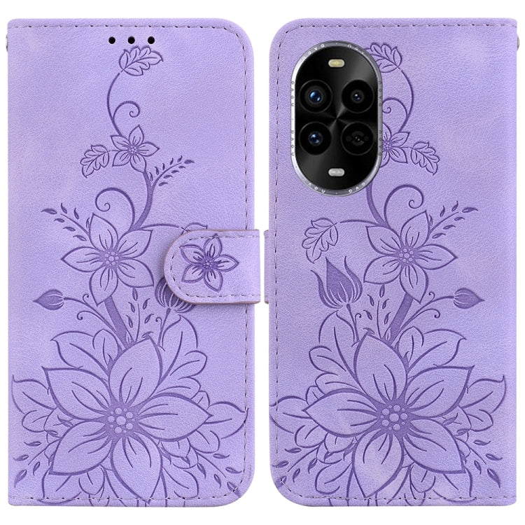 Funda de Cuero con Relieve de Lirio para Huawei Nova 13 Pro (Morado)