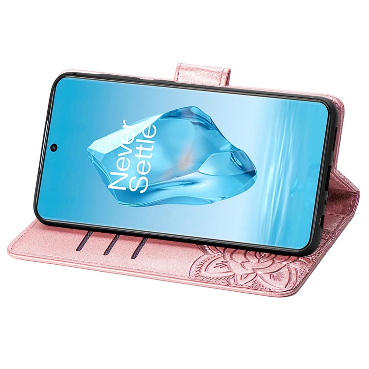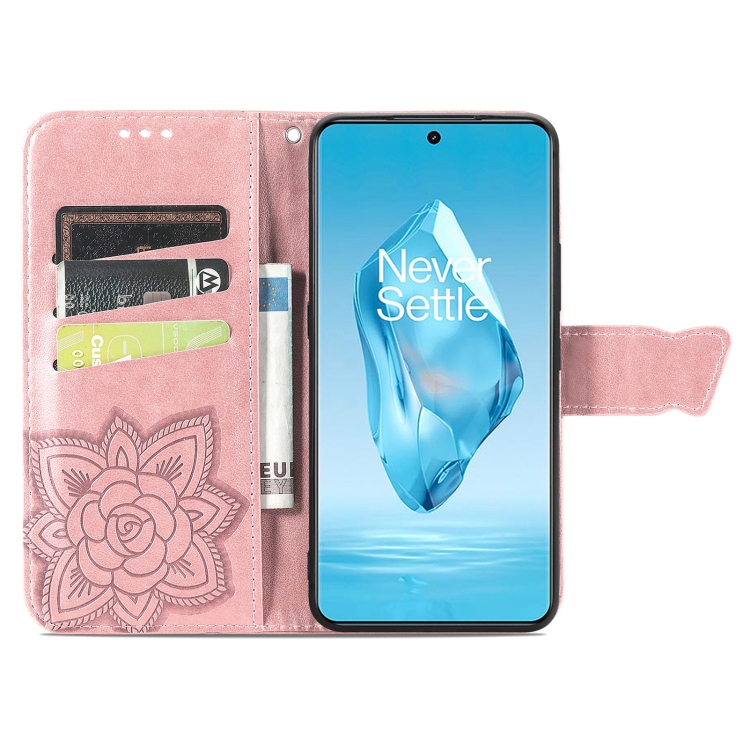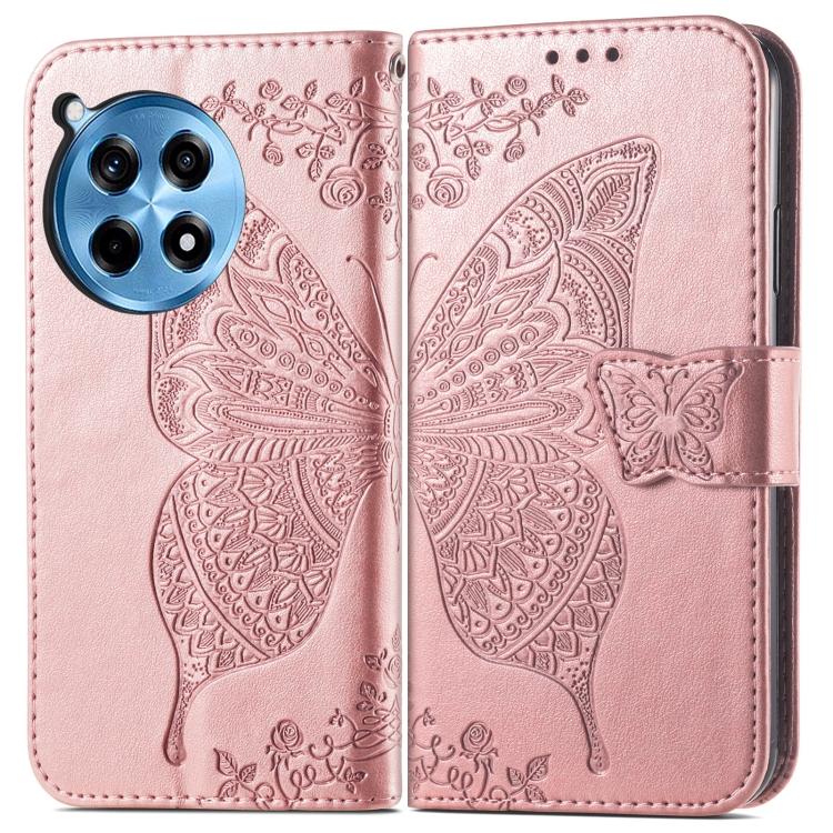 Funda de Cuero para OnePlus Ace 3 Pro con Relieve Mariposa y Flor (Oro Rosa)