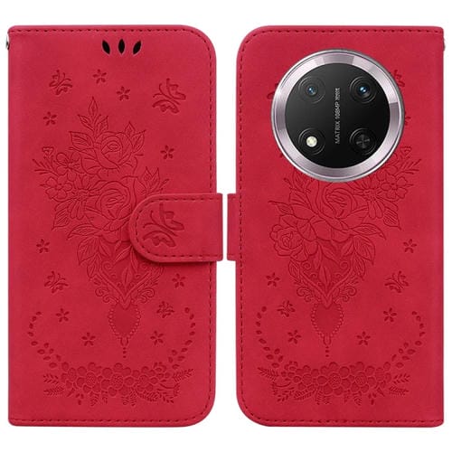 Funda de Cuero con Relieve Mariposa y Rosa para Honor X9C (Roja)