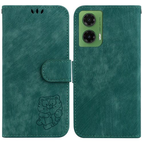 Funda de Cuero con Relieve de Tigre para Motorola Moto G35 (Verde)
