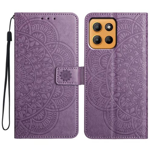 Funda de Cuero con Relieve Floral para Motorola Moto G15 (Morado)