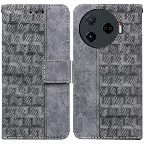 Funda de Cuero con Relieve Geométrico para Tecno Camon 30 Pro Cl8 (Gris)