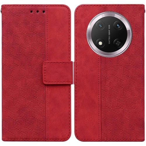 Funda de Cuero con Relieve Geométrico para Honor X9C (Roja)