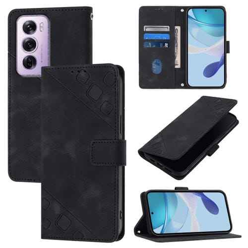 Funda de Cuero con Relieve para Teléfono Oppo Reno12 Pro Global Skin-Feel (Negra)