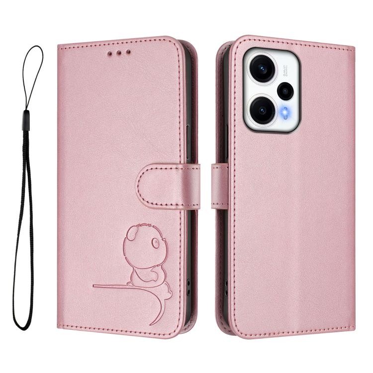 Funda de cuero con relieve RFID y cordón para Redmi Note 12 Turbo y Xiaomi Poco F5 (rosa)